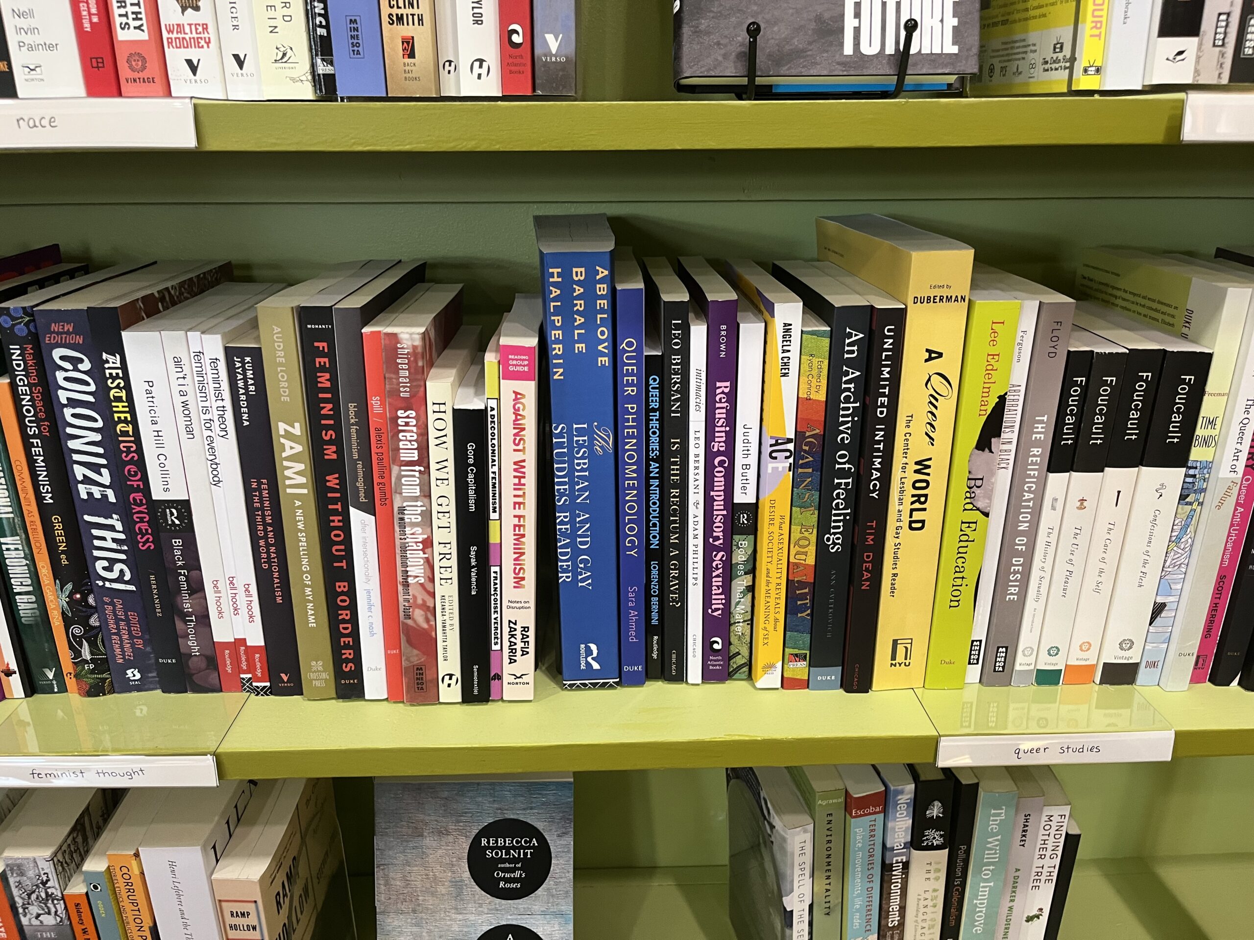 As demand and community interests shift, our shelves shift too. We replenish titles from presses like Duke University Press, carry issues of new radical publications such as Heatwave, and regularly update our collection to include timely contributions in social theory and cultural commentary as well as new and classic works of literature and poetry.